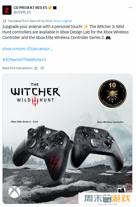 《巫师3》十周年Xbox手柄!官网支持个性化定制9月17日,CDPR发文表示,目前Xbox手柄设计试验室现已推出《巫师三》十周年手柄,产品外观炫酷,印有狼派标志,一起来看看吧!值得一提的是,标准售价79 99美元(换算人民币为569 08元),Xb