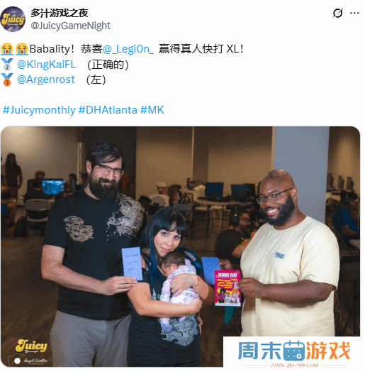 《真人快打》一女子带婴参赛夺锦标赛冠军 算不算群殴?近日,外网一名新生儿的母亲在夺得一次当地举行的《真人快打》Juicy Game Night锦标赛的冠军后走红,这位母亲带婴参赛的做法让人感慨,是母亲的力量在发作。据了解,当事人Legi0n在五天前经历