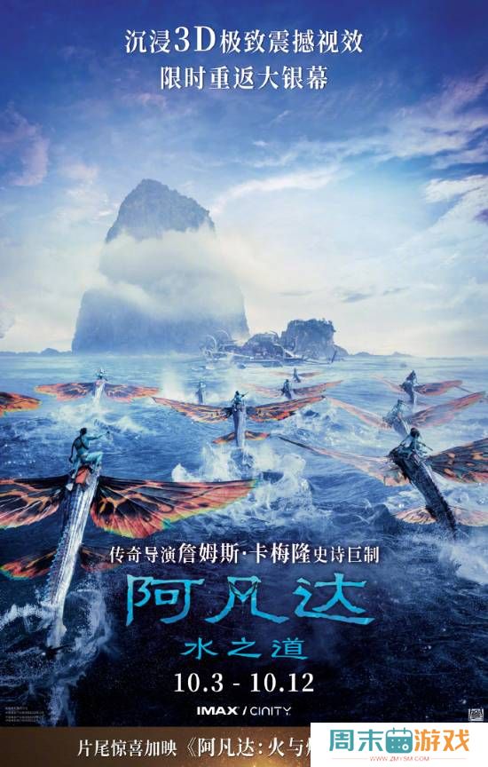 《阿凡达2:水之道》10月3日起在中国内地重映 片尾加映《火与烬》精彩片段为了预热年底的《阿凡达3》,《阿凡达2》将于10月2日-8日在全球各地举行大规模3D限定重映。9月22日,《阿凡达2:水之道》中国内地重映定档,10月3日至10月12日将在IMAX、CINITY影院重