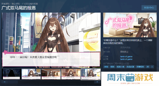 蟑螂妹你喜欢么?《广式双马尾的报恩》上架Steam由lamb of game开发的视觉小说游戏《广式双马尾的报恩》现已上架Steam商店页,发售日未定。Steam商店页面>>《广式双马尾的报恩》是一部青春恋爱题材Galgame,游戏类型为视觉小说,玩