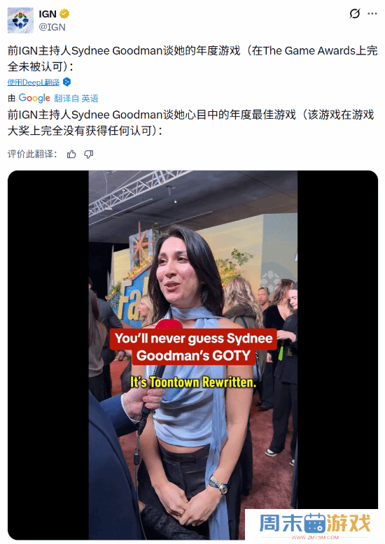 TGA美女主持谈年度游戏:背后竟有感人的故事!IGN消息,前IGN主持人Sydnee Goodman谈她心目中的年度最佳游戏,她的心之所向在TGA上完全没有得到任何认可。据她所说,她的个人年度最佳游戏是《Toontown Rewritten》