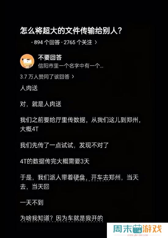 2026年了 传超大文件最快的方式依然是用人送在千兆宽带、5G普及、云存储遍地的2026年,你或许以为超大文件传输早已能“秒传”。但现实却令人意外——对于动辄数TB的海量数据,最快且安全的方式依旧是“人肉配送”。有河南信阳网友分享了自己的经历,此