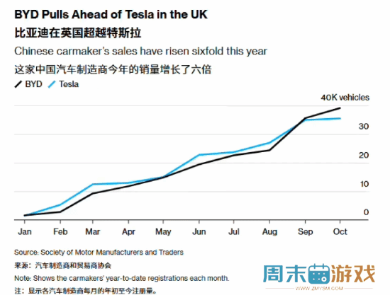 比亚迪在英国卖爆了!10月销量接近特斯拉7倍据媒体报道,据英国汽车制造商和贸易商协会(SMMT)最新数据,比亚迪10月份在英国的新车注册量达到特斯拉的近7倍。去年当英国超越德国成为欧洲纯电动车最大市场时,比亚迪的注册量仅为8788辆,特
