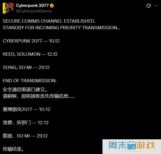 《赛博朋克2077》官方回应5周年没大的!例行公事而已昨日我们曾报道,《赛博朋克2077》官方发布了一条意味深长的帖子,暗示可能将在2025年12月10日(也正好是游戏五周年)公布重大情报。推文附上了一张日历图片,上面还特别标注了三个日期:12月10日、