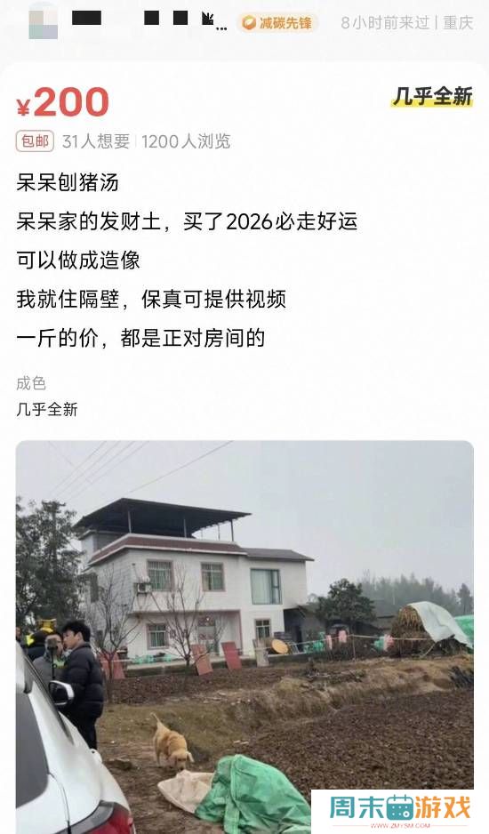 呆呆家门口泥土被炒成发财土 标价从66.66元到200元不等近日,有网友向封面新闻 记者反映,在二手交易平台上,出现多名卖家以“呆呆家邻居”名义,公开售卖重庆合川女孩“呆呆”家门前的泥土,并宣称其为“发财土”“能转运”,标价从66 66元到200元不等。有网友