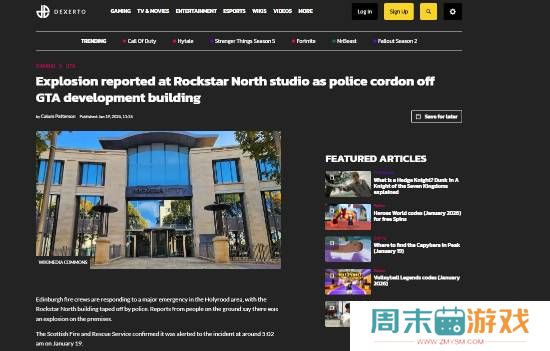 R星北方工作室发生爆炸!警方封锁《GTA6》开发大楼据外媒dexerto报道,爱丁堡消防队正在荷里路德地区应对一起重大紧急事件,Rockstar North大楼已被警方用警戒线封锁。现场人员报告称楼内发生了爆炸。苏格兰消防与救援服务局确认,他们在1月1