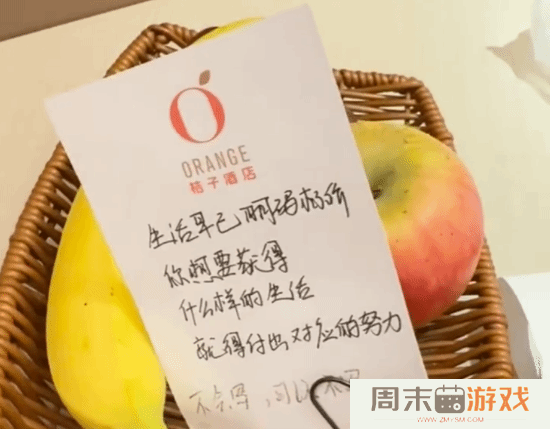 男子吐槽住桔子酒店被手写便签PUA:不会写 可以不写据巨流视频:近日,江苏。一名旅客吐槽入住桔子酒店时,收到的赠送水果中夹着一张手写便签纸,上面写有 “生活早已明码标价,你想要获得什么样的生活,就得付出对应的努力” 的内容,他质疑有 PUA 意味。旅客