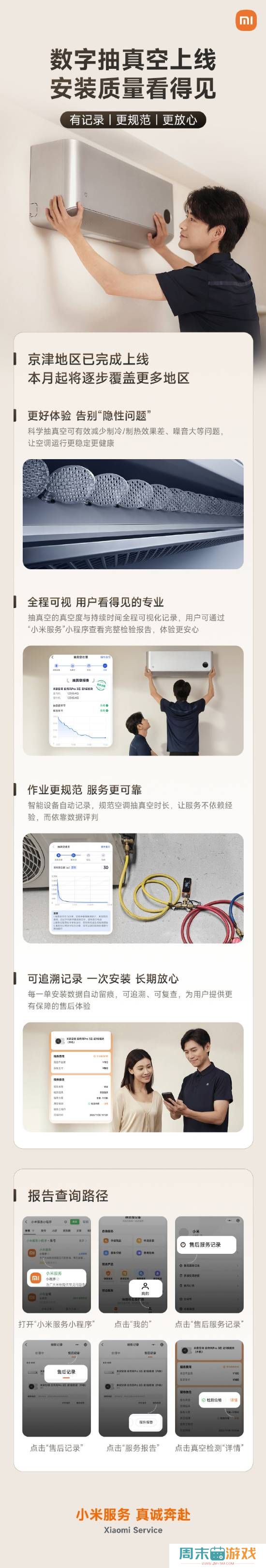 空调安装更省心了!小米宣布数字抽真空上线:自动记录、规范时长今日,小米服务宣布数字抽真空上线,该服务目前已覆盖京津地区,本月起将逐步拓展至全国。小米表示,科学抽真空可有效减少制冷 制热效果差、噪音大等问题,让空调运行更稳定、更健康。据介绍,数字抽真空全程可视,