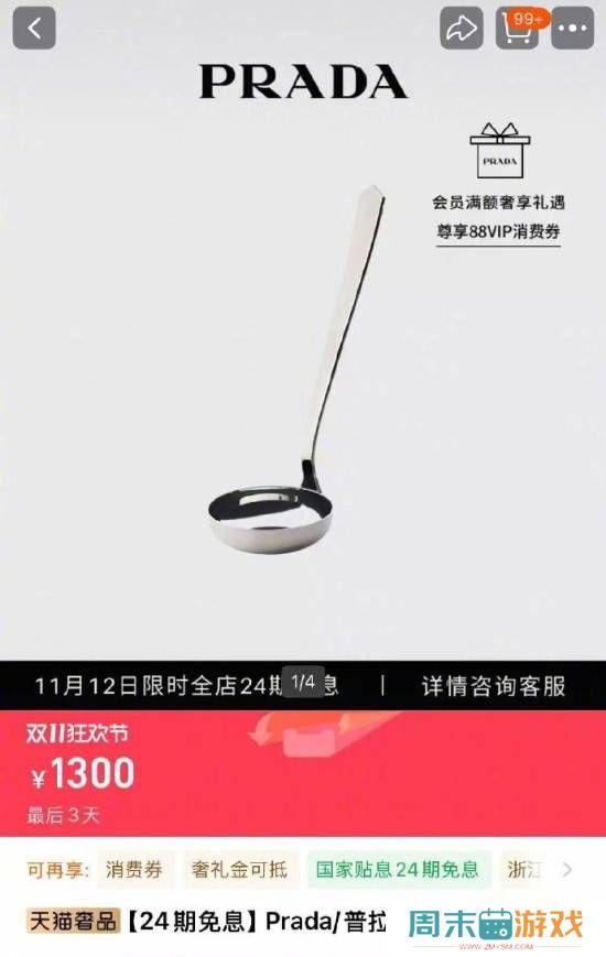 Prada不锈钢勺子售价1300元 客服回应:所有设计、技术均来自意大利有网友近日在社交平台发帖,称在Prada官方旗舰店看到一把不锈钢长柄勺在售卖,标价1300元。评论区不少网友吐槽价格太高了,“真的有人会买吗?”记者在电商平台旗舰店发现了这款勺子,全名叫“Prada