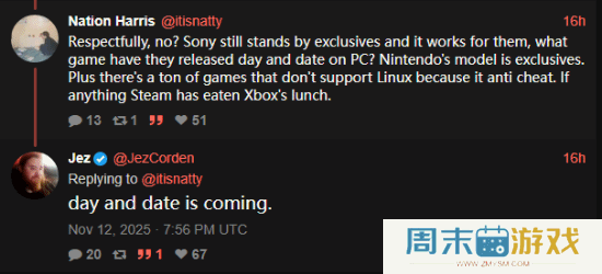 知名爆料人:PlayStation游戏"很快"会同步登陆PC日前,外媒WindowsCentral记者、知名爆料人Jez Corden在社交媒体与网友讨论游戏独占时发表观点:PlayStation游戏同步登陆PC“马上就会到来”。最初,有网友认为索尼依然坚守独