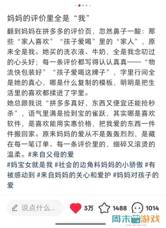 妈妈的拼多多评价里全是自己 网友:这才是网购最初的意义近日,一小红书博主分享了一则关于网购评价的日常,触动了不少网友。博主表示,自从教会妈妈用拼多多,她的评价区就成了我的“专属展区”。在妈妈拼多多的每一条商品评价里,都用“家人觉得好用”“孩子爱喝”等朴素