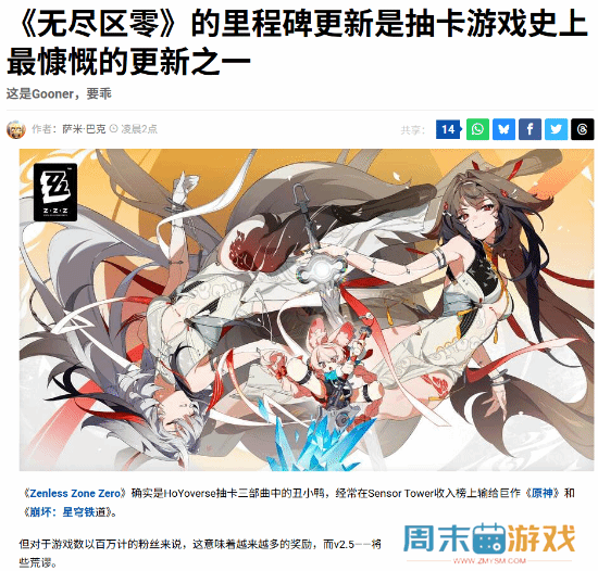 抽卡游戏的神!外媒盛赞米哈游《绝区零》福利好到爆外媒PushSquare报道,虽然《绝区零》在米哈游“御三家”里是“丑小鸭”一样的存在,在收入排行榜上常常不敌《原神》和《崩坏:星穹铁道》,但这也意味着越来越棒的福利。在即将发布的2 5版本,福利方面