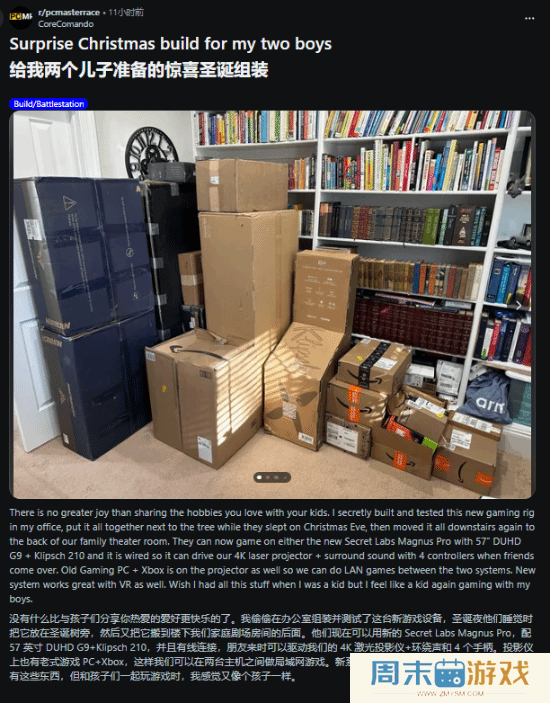 为儿子购买高端设备引热议!评论区秒变认亲现场1月20日,外网玩家社区reddit上一名玩家@CoreComando晒出了自己为儿子们准备的新游戏设备,这种分享喜悦的动态下却引发了其他网友高喊:“收养我吧!”这名玩家晒出图片后,评论区立刻转变成认