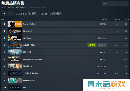 Steam周销榜:网易《燕云十六声》火爆全球超热卖!Steam周销榜已经更新,一起看下12月2日-12月9日的全球销量数据吧!值得一提的是,网易武侠开放世界大作《燕云十六声》继11月15日海外上线后,已经连续在榜四周,并且相较于上周的排名还高了2名。总