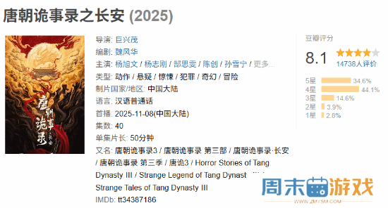 《唐朝诡事录之长安》豆瓣开分8.1分:还是熟悉的味道今日,《唐朝诡事录之长安》豆瓣评分出炉!开分8 1分截至发稿前,共计14738名观众打分,5星占比34 6%,4星占比44 1%,口碑看起来很不错。给出好评的观众表示还是当初内个味道儿。也有观众表示,