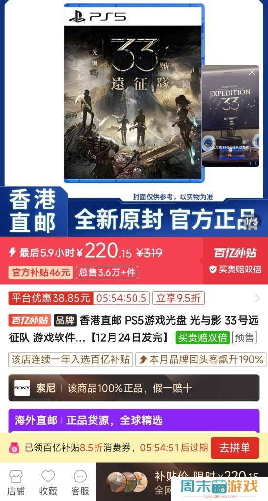 《光与影:33号远征队》百亿补贴好价!港版盘仅需220元《光与影:33号远征队》在拼多多百亿补贴迎来好价!在百亿补贴免费领取8 5折券后,封面为繁中的港版光盘仅需220元即可入手!不过这并不是史低价,一个月前就有215元的真香价。本作最近夺得了金摇杆年度最新闻情报 / 2025-12-05 -